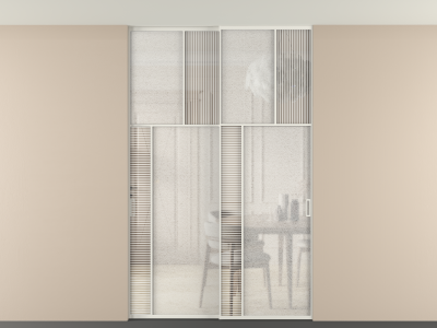 Дополнительно на раздвижную двустворчатую перегородку вдоль стены и четырехстворчатую перегородку внутри проема с двумя неподвижным полотнами можно установить механизм синхронного открывания — при открывании одной створки, вторая открывается автоматически.