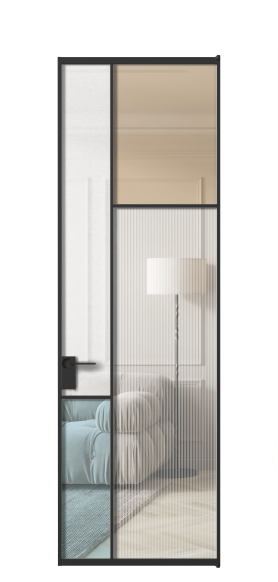 Лаконичный разделительный профиль внутренней раскладки полотна обеспечивает эстетический внешний вид конструкции и идеальную стыковку вставок из стекла.